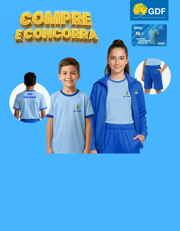 Somos uma loja credenciada pelo Governo do Distrito Federal para o benefício Cartão Uniforme Escolar. Então aceitamos somente o pagamento via cartão BRB do beneficio.